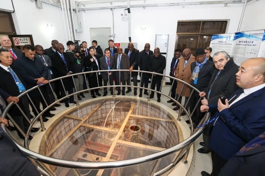 活動(dòng)期間,駐華使節(jié)一行饒有興致地參觀了中核集團(tuán)專設(shè)的展覽,重點(diǎn)聽取了中核集團(tuán)型譜化核能技術(shù)、核技術(shù)應(yīng)用解決方案以及國際科技合作等方面的介紹,并在中國原子能科學(xué)研究院實(shí)地參觀了北京稀有同位素束流裝置、101重水研究堆、微型中子源反應(yīng)堆、放射性藥品生產(chǎn)線以及核保障技術(shù)重點(diǎn)實(shí)驗(yàn)室。原子能院院長楊紅義介紹了該院的研究方向與科研能力、國際合作情況。