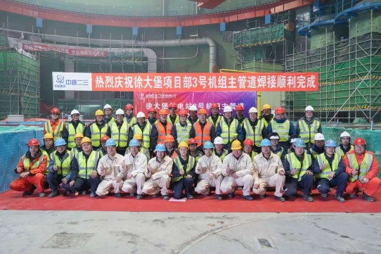 3月10日,中核二三舉行徐大堡核電3號機組主管道焊接完工儀式。隨著3號機組主管道最后一道焊口焊接完成,標志著徐大堡核電3號機組主管道焊接完成關(guān)鍵里程碑順利實現(xiàn),為后續(xù)沖堆及冷試工作的高效推進奠定了堅實的基礎(chǔ)。中核遼寧核電有限公司總經(jīng)理張雄、工程總經(jīng)理兼總工程師王凱,中核工程徐大堡項目部黨委書記、總經(jīng)理孟英輝,中核咨詢徐大堡項監(jiān)部總監(jiān)劉輝、副總監(jiān)蔣嵐峰以及各單位相關(guān)領(lǐng)導、管理人員、作業(yè)人員共同出席見證焊接完工儀式。