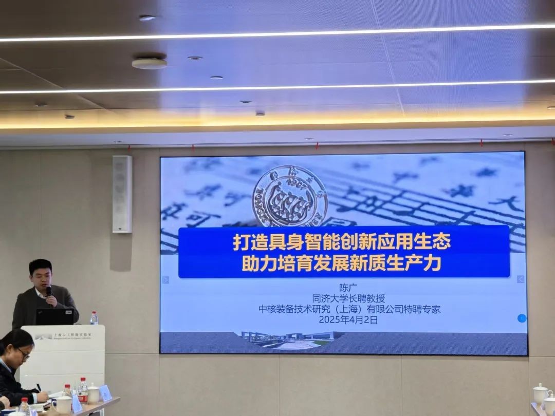 在報告環節,會議邀請上海人工智能實驗室生態總監許劭華和中國人工智能學會具身智能專委會秘書長、同濟大學陳廣教授分別圍繞《人工智能發展趨勢》《打造具身智能創新應用生態,助力培育發展新質生產力》等主題進行了專題分享和技術交流。