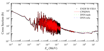 針對以上問題,原子能院核數據重點實驗室創新地提出將機器學習算法——耦合相移深度神經網絡方法應用于該領域,將中子共振數據在頻域空間上從高頻相移到了低頻,快速高效地再現鈾-235中子裂變截面3000多個共振峰與快中子能區裂變截面,在該領域研究取得重要進展。