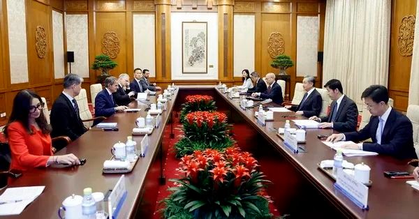 2025年4月11日,中共中央政治局委員、外交部長王毅在北京會見國際原子能機構總干事格羅西。