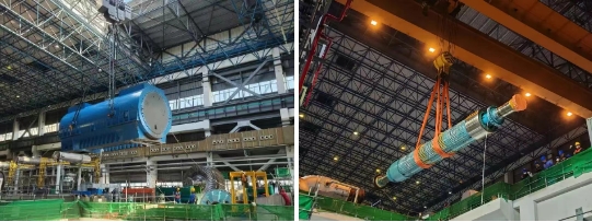 秦二廠2號機組此次功率提升改造,在不增加核功率的前提下,通過全面更換發電機定轉子部件、對汽輪機高低壓缸及轉子等通流部件進行技術升級與更新、同步對勵磁、主變壓器、輔機等進行增容適應性技術改造,實現發電功率的提升。改造期間創新采用開頂法整體更換發電機定子,大幅優化關鍵路徑工序,屬國內首次。