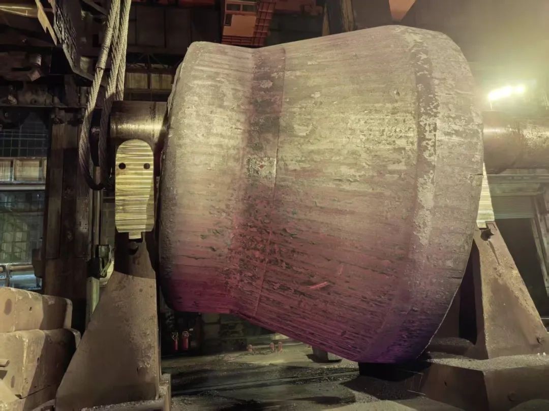 錐體鍛件為特大異形件,采用特殊工裝模具多火次成形,具有裝爐起吊難、出爐夾橢風(fēng)險(xiǎn)高、上下馬架時(shí)多行車(chē)多工裝聯(lián)動(dòng)操作復(fù)雜性高的特點(diǎn)。為此,鍛件分廠在鍛造前針對(duì)性的進(jìn)行了全流程冷試聯(lián)動(dòng)操作演練。在鍛壓過(guò)程中,大鍛所、鍛件分廠技術(shù)骨干全程跟蹤,及時(shí)做好現(xiàn)場(chǎng)服務(wù);在成形的關(guān)鍵階段,各條線加班加點(diǎn),科學(xué)調(diào)配早中夜班連續(xù)作戰(zhàn);現(xiàn)場(chǎng)操作人員在緊湊的生產(chǎn)中高效完成工裝準(zhǔn)備,依據(jù)關(guān)鍵控制點(diǎn)觀測(cè)動(dòng)態(tài)調(diào)整鍛造操作過(guò)程,并在鍛件高溫情況下進(jìn)行異形鍛件多點(diǎn)位的尺寸測(cè)量,全力保障生產(chǎn)進(jìn)度,確保了核電攻關(guān)產(chǎn)品的順利生產(chǎn)。