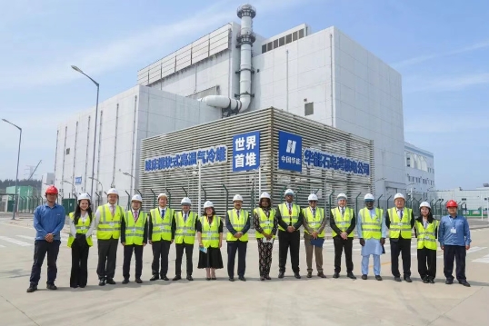 6月23日,由國(guó)家原子能機(jī)構(gòu)、中國(guó)常駐維也納代表團(tuán)共同策劃的第二屆“核合之旅-維也納多邊大使中國(guó)行”活動(dòng)第一站來(lái)到華能石島灣核電公司,來(lái)自加納、孟加拉國(guó)、巴西、納米比亞、尼日利亞、巴基斯坦、委內(nèi)瑞拉、印度尼西亞8個(gè)國(guó)家的常駐維也納聯(lián)合國(guó)及其他國(guó)際組織代表團(tuán)大使、高級(jí)代表(以下簡(jiǎn)稱“使節(jié)團(tuán)”)深度考察全球首座球床模塊式高溫氣冷堆——華能石島灣高溫氣冷堆示范工程。國(guó)家原子能機(jī)構(gòu)、中國(guó)常駐維也納代表團(tuán)有關(guān)人員陪同考察。