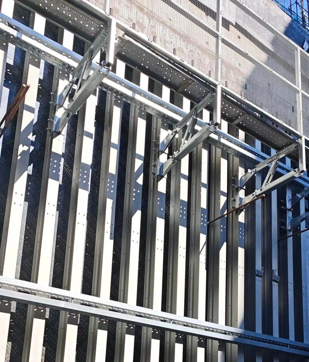 在編制施工方案階段,項目管理團隊便對現場大模板支設工況進行深度調研與系統性規劃。通過精準設計與精細化制造流程,定制的直行墻大模板在生產環節實現了高度一致性與施工精度保障。此外,大模板系統依托標準化、模塊化設計理念,顯著簡化了施工過程中的組織管理與多方協調工作,不僅大幅提升項目管理效能、有效縮短施工周期,還通過優化資源配置降低了綜合成本,實現施工效率與經濟效益的雙重提升。