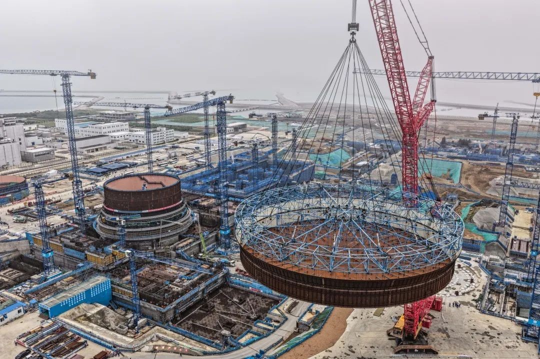 2025年7月1日12時(shí)58分,華能山東石島灣核電站擴(kuò)建一期工程2號(hào)機(jī)組反應(yīng)堆廠房鋼襯里模塊一順利吊裝就位。