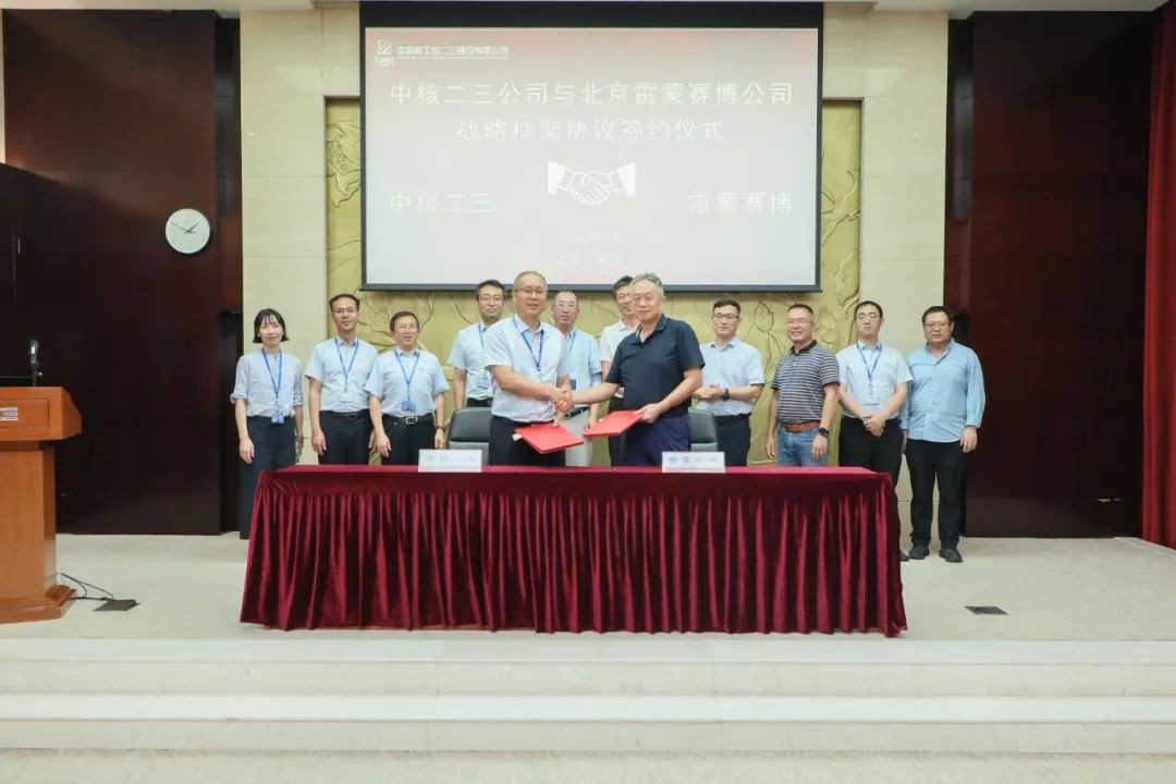 7月2日,中核二三與北京雷蒙賽博核裝備技術研究有限公司(簡稱“雷蒙賽博”)簽署戰略合作框架協議。 這是雙方自2015年以來第四次簽署協議,標志著戰略合作關系的持續深化。中核二三黨委書記、董事長范凱與雷蒙賽博董事長兼技術執行官周文參加簽約儀式,就深化合作進行深入交流,并共同簽署協議。
