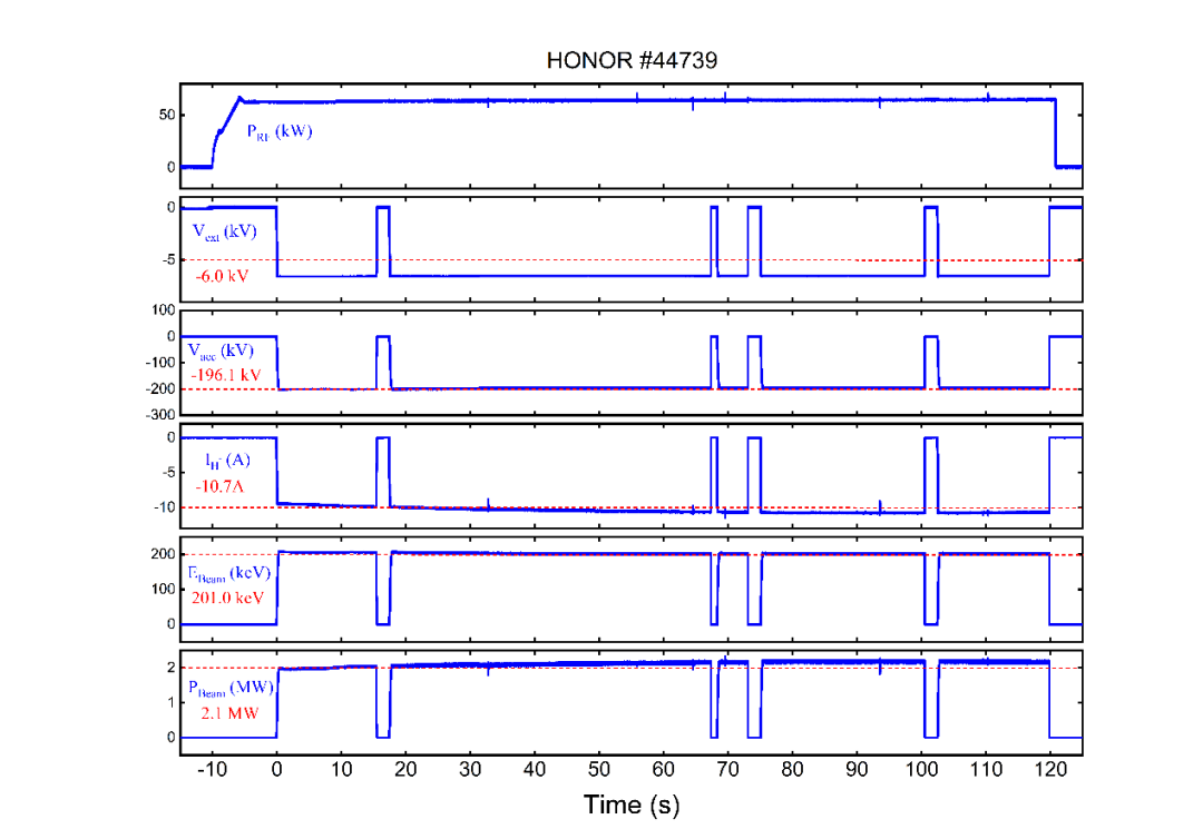 7月5日,等離子體所組織召開工藝測試暨工藝驗收會,邀請來自中國科學技術大學、中電集團38所、北京大學、合肥工業大學的5位專家組成專家組。專家組聽取了NNBI系統負責人的項目工藝總結報告,審閱了自測試報告等相關文檔,并親赴負離子源中性束注入實驗室開展現場測試。在專家組的見證下,系統順利達到了束能量202.1keV、束脈寬120s、束功率2.1MW的參數指標。測試結果表明,該系統各項指標均達到了驗收要求,總體性能達到國際先進水平。