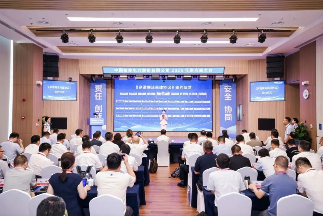 8月15日,中國核電在杭州召開2025年供應商大會,作《以親清生態建設賦能產供鏈高質量發展,攜手踐行強核報國》的主旨報告,與合作伙伴代表共同簽署《親清廉潔共建協議》,鄭重倡議產供鏈(即“產業鏈供應鏈”簡稱)合作伙伴共同構建“親而有度 清而有為”的合作關系,以“親清”護航核電產供鏈高質量發展。