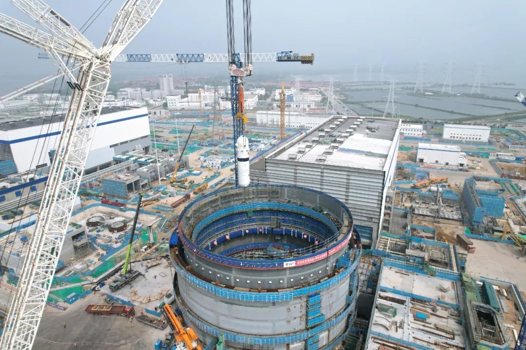 8月18日10時48分,經過起鉤、變幅、回轉、下落等動作,由中核五公司承建的海陽核電4號機組反應堆穩壓器順利吊裝就位,整個吊裝過程安全、有序、可控。