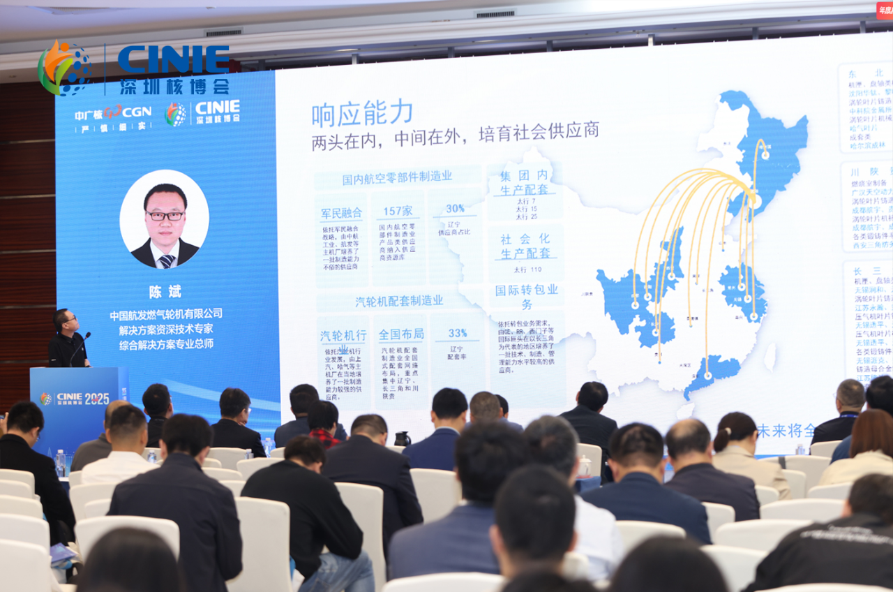 在主題演講中,中國航發燃機解決方案資深技術專家、綜合解決方案專業總師陳斌圍繞“核電應用場景分析”這一核心命題,系統闡述了燃氣輪機在核能領域的多元化應用場景。針對核電廠應急電源系統高可靠性需求,重點介紹了公司自主研發的“太行7”燃氣輪機在極端工況下的穩定運行能力,其快速啟動、高點火成功率、快速響應負荷、高可靠性等特性及模塊化、輕量化的緊湊結構設計可有效提升核電廠應急供電保障水平,為核安全筑牢“最后一道防線”。