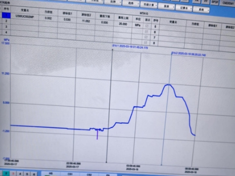 海南昌江核電廠3號機組二回路聯合水壓試驗在各方的全力配合下于2025年3月18日凌晨2點開始升壓,在6點30分完成試驗壓力平臺(11.05MPa)穩壓,7點05分泄壓至設計壓力平臺(8.5Mpa),7點35分穩壓完成,8點50分泄壓完成。