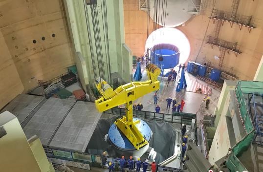 12月10日,我國自主三代核電華龍一號示范工程——中核集團福清核電6號機組反應堆壓力容器成功就位,為后續安裝工作的全面展開創造條件。吊裝當天,現場完成壓力容器翻轉抱環安裝、可剝落涂層清理、壓力容器蓋板拆除、壓力