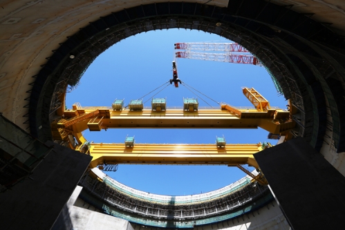 華龍一號示范工程福清核電6號機組環吊主梁吊裝就位