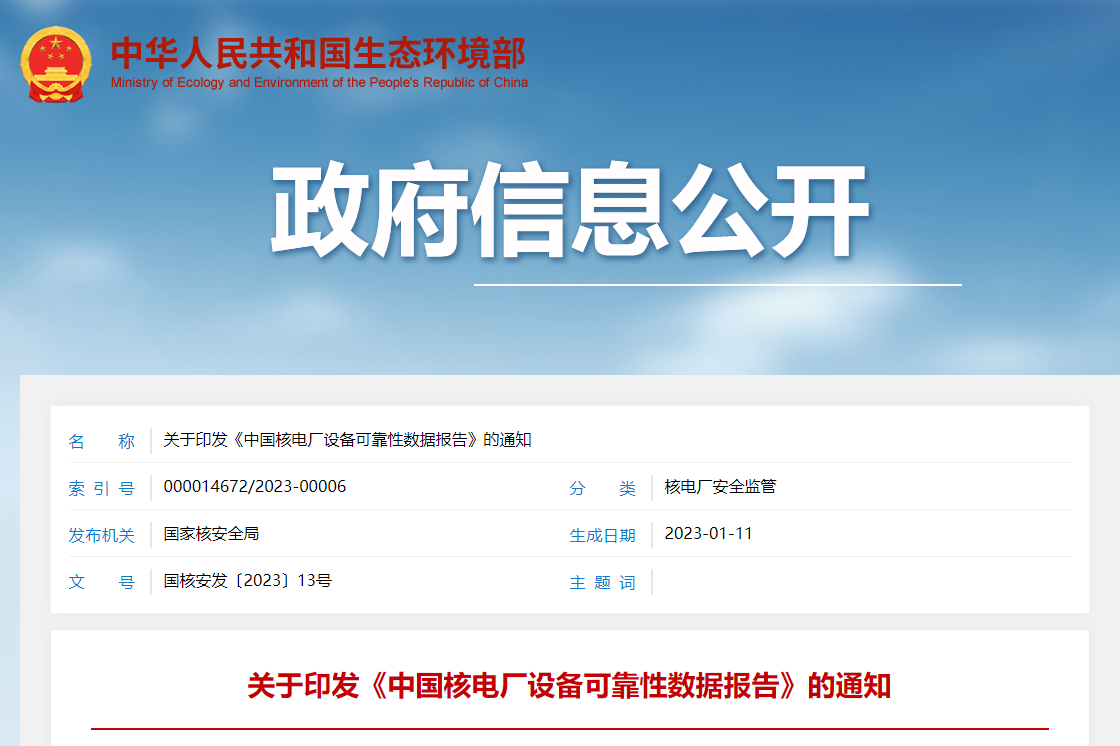 關(guān)于印發(fā)《中國核電廠設(shè)備可靠性數(shù)據(jù)報告》的通知