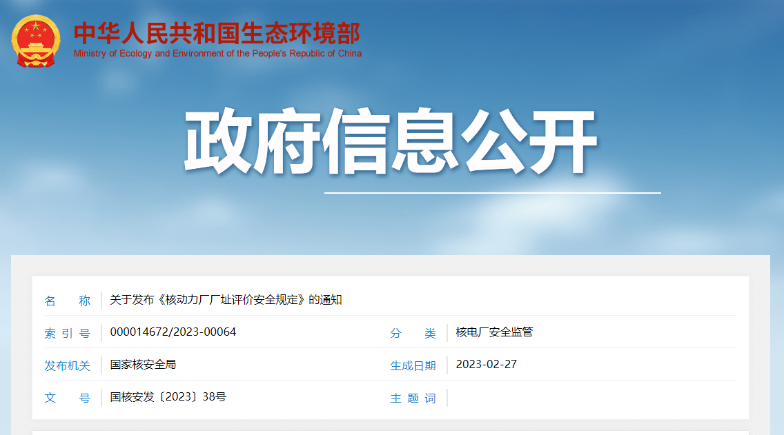 關(guān)于發(fā)布《核動力廠廠址評價安全規(guī)定》的通知