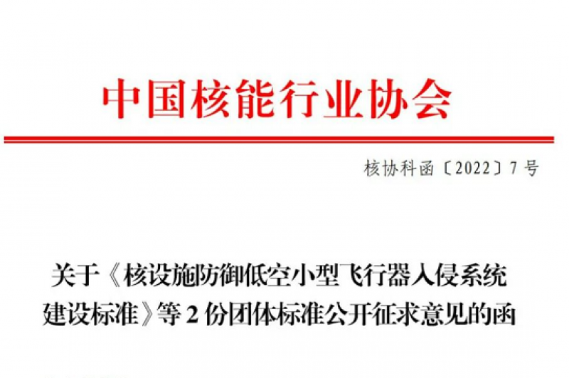 關(guān)于《核設(shè)施防御低空小型飛行器入侵系統(tǒng)建設(shè)標(biāo)準(zhǔn)》等2份團(tuán)體標(biāo)準(zhǔn)公開征求意見的函