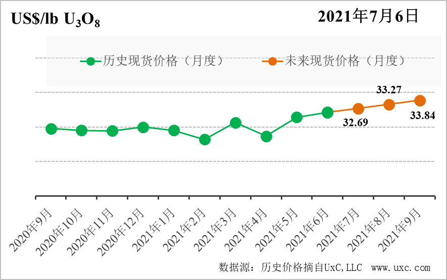 2021年7月8日,中國核能行業協會發布第8期“CNEA國際天然鈾價格預測指數(2021年7月)”。