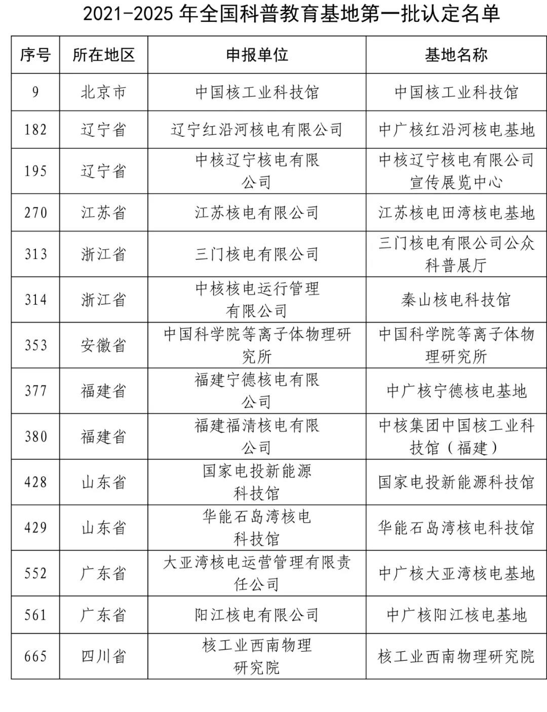 2021-2025年核科普類全國科普教育基地入圍名單!