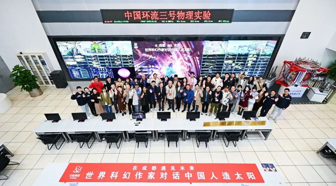 10月20日,在第81屆世界科幻大會召開的第三天,中核集團核工業西南物理研究院(以下簡稱“西物院”)舉辦了“在成都遇見未來——世界科幻作家對話中國人造太陽”主題實踐活動,邀請來自全球的科幻作家走進新一代人造太陽“中國環流三號”裝置現場,身臨其境的體驗大國重器,了解中國聚變領域的重大科技進展,通過創新科技為科幻作家點亮創作靈感。