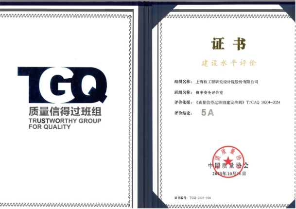 近日,全國第四十七次質量管理小組代表會議暨全國質量信得過班組建設經驗交流大會在北京舉辦,上海核工院堆芯設計所概率安全評價(PSA)室從各行業參賽的眾多班組中脫穎而出,榮獲全國質量信得過班組5A級(最高級)稱號。質量信得過班組建設活動是我國質量領域重要的群眾性質量管理實踐載體。公司堅持以創優引領、質量提升為核心,鼓勵廣大一線班組積極開展班組建設,夯實基礎管理、改善現場運營、提高人員素質、提升質量效能。PSA室作為核心專業...