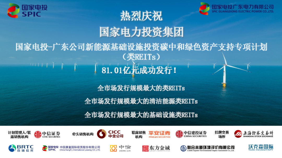 10月18日,廣東公司在上交所成功發行國家電投-廣東公司新能源基礎設施投資碳中和綠色資產支持專項計劃(類REITs),發行規模81.01億元。