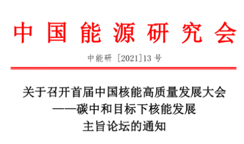 關(guān)于召開首屆中國核能高質(zhì)量發(fā)展大會(huì)——碳中和目標(biāo)下核能發(fā)展主旨論壇的通知。