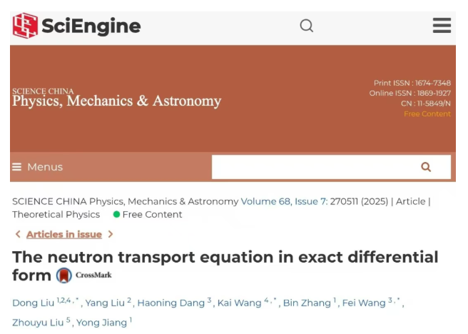 近日,由中國核動(dòng)力研究設(shè)計(jì)院先進(jìn)核能技術(shù)全國重點(diǎn)實(shí)驗(yàn)室核工業(yè)智能科學(xué)計(jì)算團(tuán)隊(duì)(AIDIND)牽頭,浙江大學(xué)、西安交通大學(xué)合作的研究成果純微分形式中子輸運(yùn)方程已在中科院1區(qū)TOP頂刊《中國科學(xué):物理學(xué)力學(xué)天文學(xué)》英文版2025年第7期正式發(fā)表。此項(xiàng)研究成果開發(fā)出一種利用人工智能結(jié)合純微分輸運(yùn)方程形式的新方法,讓核反應(yīng)堆中子輸運(yùn)計(jì)算變得更快速、更高效。中子輸運(yùn)方程是核科學(xué)領(lǐng)域描述中子從產(chǎn)生到消亡輸運(yùn)過程的方程,精確高效的中子輸...