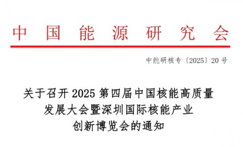 關于召開2025第四屆中國核能高質量發展大會暨深圳國際核能產業創新博覽會的通知