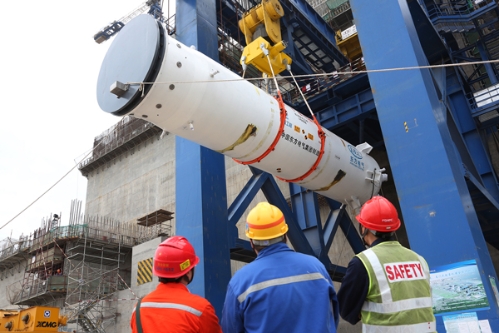 華龍一號全球首堆福清核電5號機組穩壓器吊裝就位