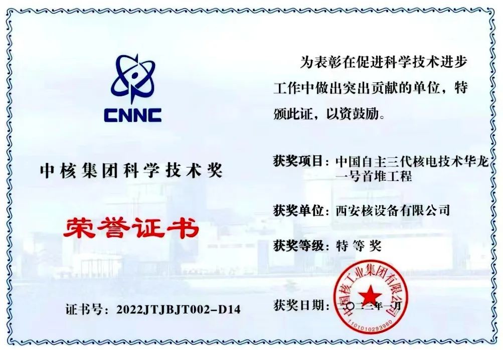 西核設(shè)備榮獲中核集團科學(xué)技術(shù)獎特等獎