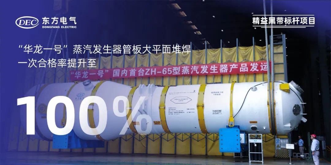 東方重機項目攻關團隊圍繞提升蒸汽發生器管板堆焊一次合格率,應用SIPOC宏觀流程圖梳理堆焊全流程,通過因果矩陣、FMEA分析、卡方檢驗等方法工具驗證不同焊接人員、班次數量和關鍵焊接參數對質量的影響,鎖定9個關鍵因子,重點創新手工焊弧坑處理方法、優化自動焊關鍵焊接參數、固化標桿焊接作業流程、合理安排生產班次等,實現蒸汽發生器管板大平面堆焊一次合格率提升24%,后續5臺一次性合格率100%,成為行業內最佳標桿實踐。