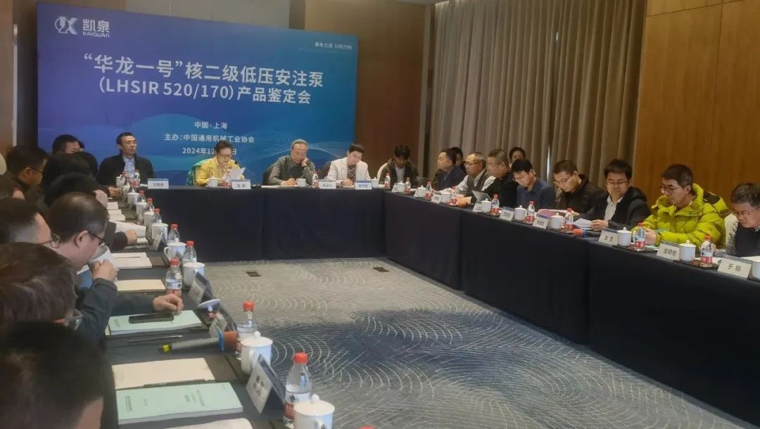 2024年12月23-24日,中國通用機械工業協會在上海組織召開了由上海凱泉泵業(集團)有限公司研制的“華龍一號核二級低壓安注泵(LHSIR520/170)”產品樣機鑒定會。