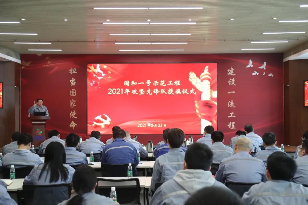 2月23日,公司舉行“國(guó)和一號(hào)”示范工程2021年攻堅(jiān)先鋒隊(duì)授旗儀式,公司黨委書記、董事長(zhǎng)汪映榮出席會(huì)議并講話,公司黨委副書記、總經(jīng)理郝宏亮宣讀了《關(guān)于成立國(guó)和一號(hào)示范工程2021年攻堅(jiān)先鋒隊(duì)的通知》并作工作部署,會(huì)議由紀(jì)委書記、工會(huì)主席劉志達(dá)主持。