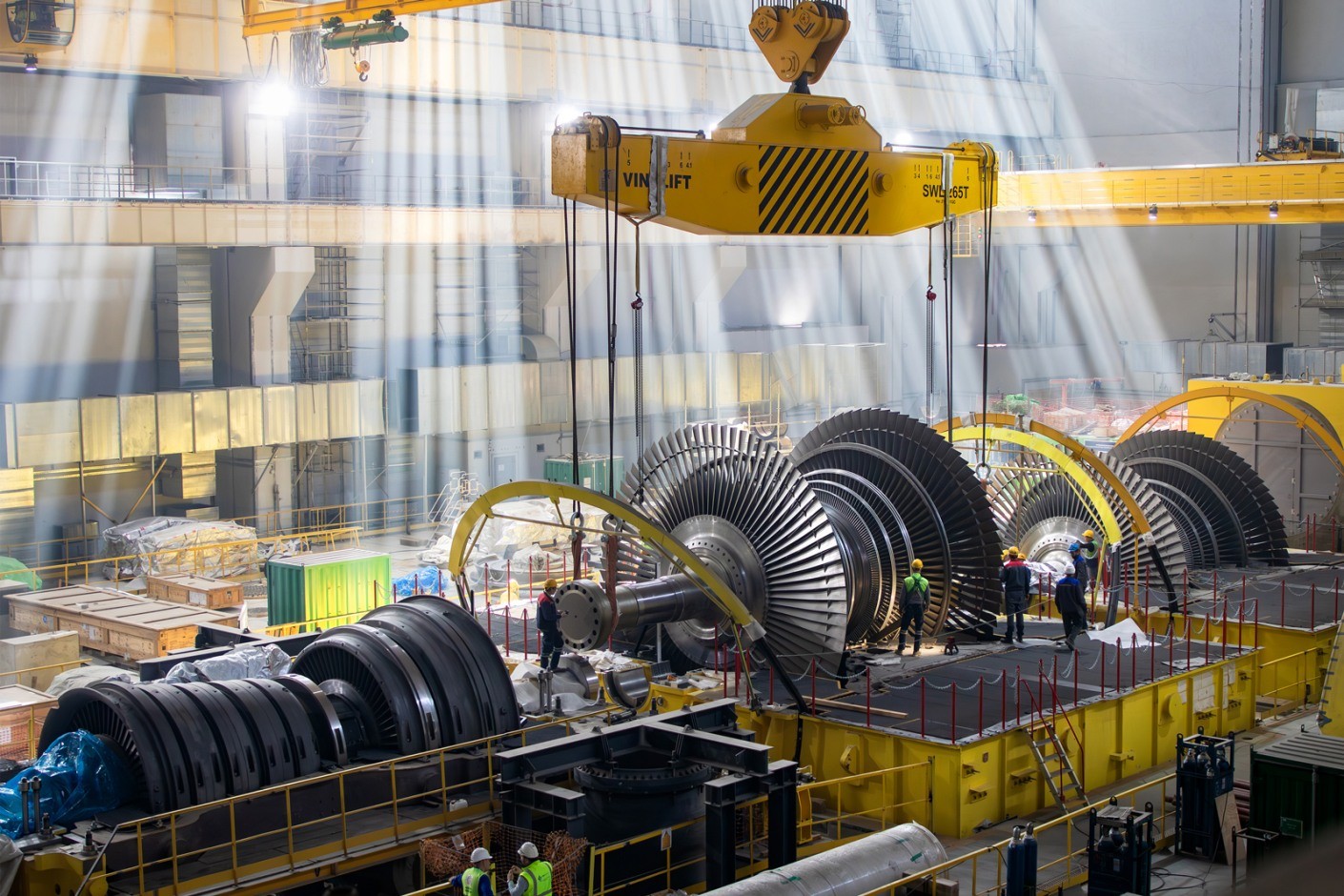 2024年10月15日,在阿庫尤核電站(由土耳其Rosatom國營公司建造)首臺機組汽輪機廠房內,兩臺低壓轉子中的最后一臺安裝在設計位置。安裝是在一名工程師(設備制造商的代表)的監督下進行的。轉子組件的質量為255噸。轉子是使用橋式起重機安裝的。安裝轉子是一項技術復雜的操作,需要高精度。操作成功,目前阿庫尤核電廠1號機組汽輪機組主要大型部件已全部安裝到設計位置。在開始測試渦輪機組之前,我們必須設置渦輪軸的線路,并確保二次回路的密度...