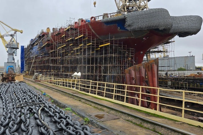 聯合造船公司(USC)波羅的海工廠的造船廠已經完成了通用核破冰船楚科奇號的船體成型,并正在為該船的下水做準備,該船將于10月底下水。正如南加州大學所指出的,該船的船體由耐用、耐腐蝕的鋼制成,并且可以防止結冰。為了防止冰塊粘附,提供氣動清洗。破冰船在冰上著陸時的最大載荷落在船體3m寬的冰帶上,為保證特殊強度,核動力船的該部分采用45mm厚的特殊鋼材組裝而成。該公司補充說,該船首重 178 噸,是楚科奇河船頭端擴大塊的一部分,將能夠在厚達...
