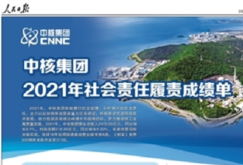 《人民日?qǐng)?bào)》:中核集團(tuán)2021年社會(huì)責(zé)任履責(zé)成績(jī)單