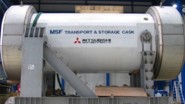三菱重工(MHI)表示,該公司最近開始為四國電力公司(Shikoku)制造乏燃料干式運(yùn)輸和貯存容器。每個(gè)容器高5.2米,直徑2.6米,裝滿乏燃料組件后重約120噸。四國電力公司將在伊方核電廠中間干式貯存設(shè)施中使用這種容器。