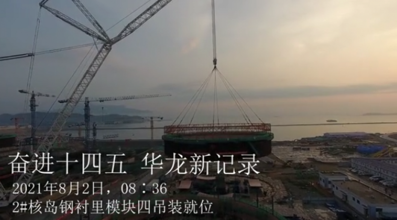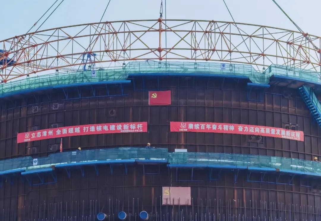 華龍一號漳州項目2號機組鋼襯里模塊4吊裝完成