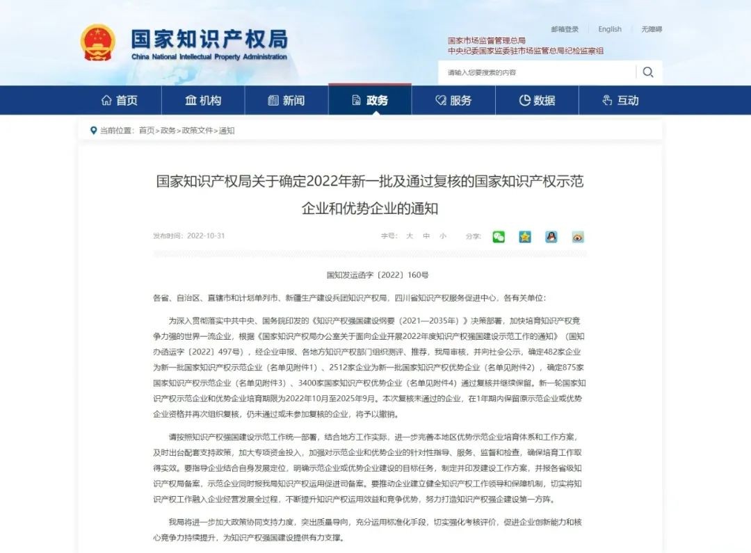 10月31日,國(guó)家知識(shí)產(chǎn)權(quán)局發(fā)布《關(guān)于確定2022年新一批及通過(guò)復(fù)核的國(guó)家知識(shí)產(chǎn)權(quán)示范企業(yè)和優(yōu)勢(shì)企業(yè)的通知》,海南核電有限公司榮登榜單,獲此殊榮,既是對(duì)海南核電堅(jiān)持創(chuàng)新驅(qū)動(dòng)戰(zhàn)略的肯定,更是公司積極推進(jìn)知識(shí)產(chǎn)權(quán)戰(zhàn)略和健全知識(shí)產(chǎn)權(quán)體系結(jié)出的又一碩果!