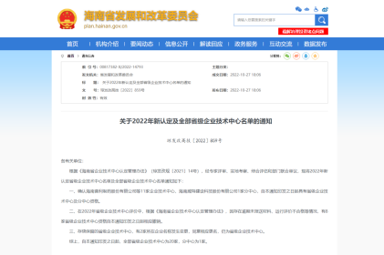 再+1,海南核電通過(guò)“海南省企業(yè)技術(shù)中心”認(rèn)定