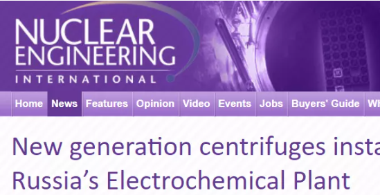 2021年9月9日,俄羅斯核燃料產供集團(TVEL)表示,下屬的西伯利亞化學聯合體與克拉斯諾亞爾斯克電化學工廠(ECP)已按計劃啟動了第三條新一代氣體離心機生產線。