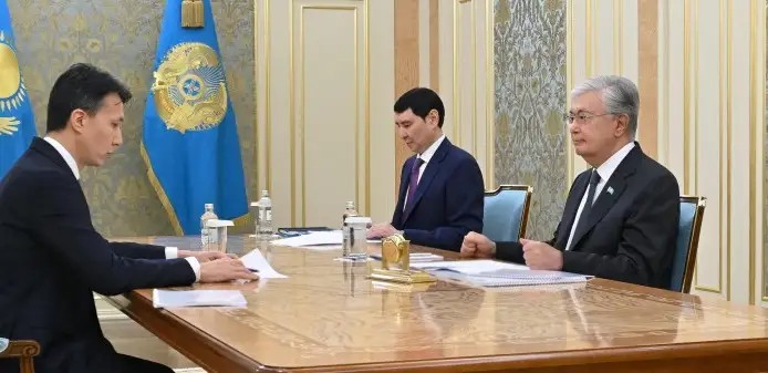 據哈薩克斯坦總統府新聞局消息,哈薩克斯坦總統哈斯穆-卓瑪爾特·托卡耶夫13日會見哈薩克斯坦國家原子能工業公司(?азатом?нерк?с?п)董事會主席梅爾詹·尤蘇波夫。