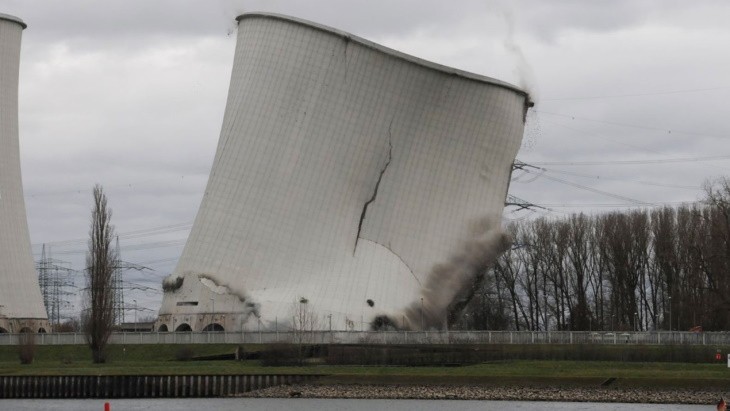 德國Biblis核電站四個80米高的冷卻塔中的第一個已經(jīng)被拆除。為應(yīng)對日本福島第一核電站的事故,這座擁有兩個機組的核電站于2011年3月被關(guān)閉。