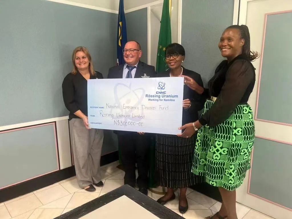 近日,中核集團羅辛鈾礦向納米比亞救災基金捐資30萬納幣,用于幫助納米比亞北部因洪澇災害生產生活受影響民眾重建家園。羅辛鈾礦礦長約翰·柯茲(Johan Coetzee)代表中核集團向納米比亞救災基金進行捐贈,納米比亞總理沙拉·庫貢戈勒瓦(Saara Kuugongelwa)代表總理府接受了捐贈。