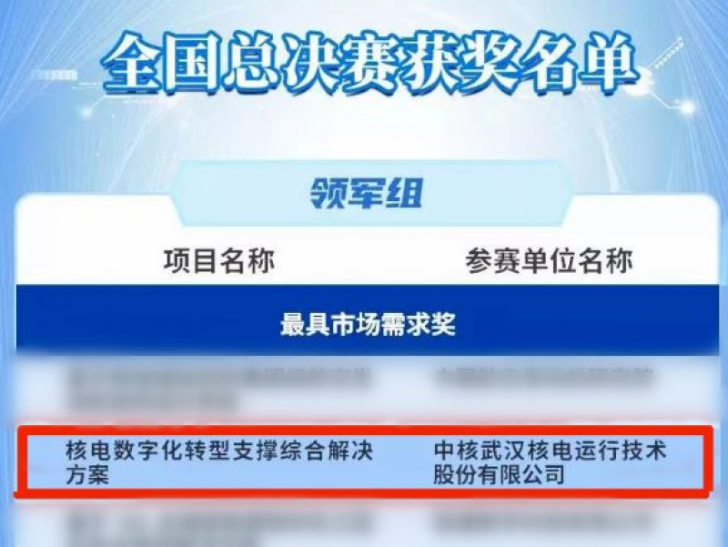 中核集團在第四屆中國工業互聯網大賽全國總決賽中取得佳績