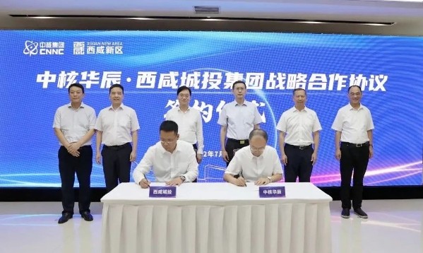 7月25日,中核集團黨組成員、副總經理劉敬率隊到陜西省西咸新區座談交流,與西咸新區管委會主任姜建春就進一步深化企地合作,共建秦創原創新驅動平臺總窗口進行交流座談,并出席中核華辰與西咸城投集團戰略合作協議簽署儀式。