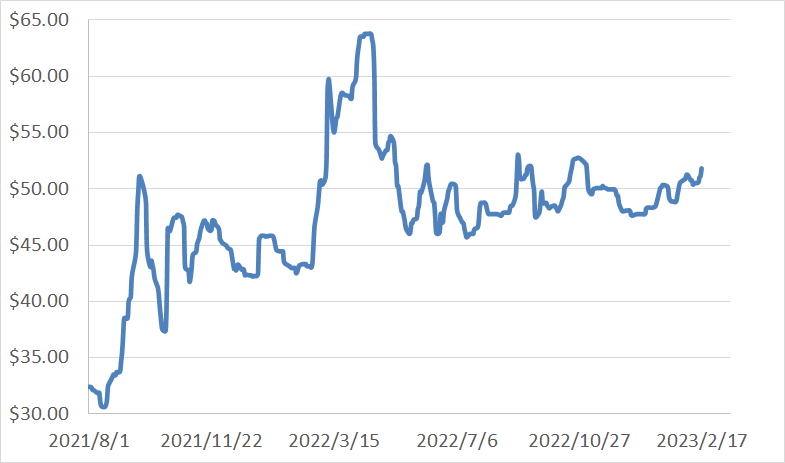 CNEA國際天然鈾價格預測指數(2023年2月)