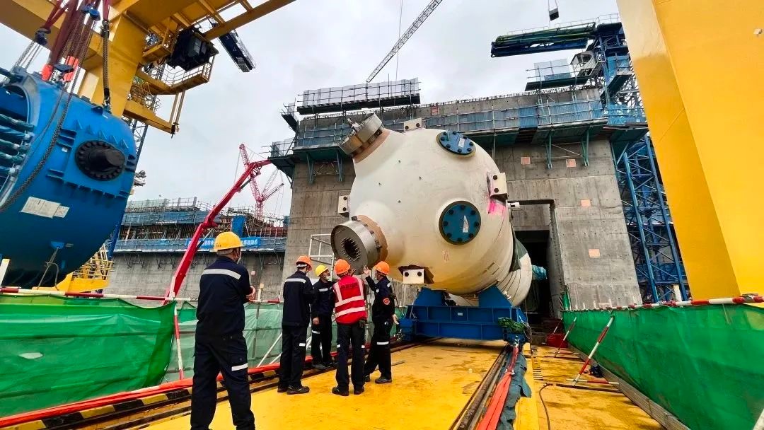 12月3日,“華龍一號”太平嶺核電1號機組首臺蒸汽發生器順利吊裝就位。