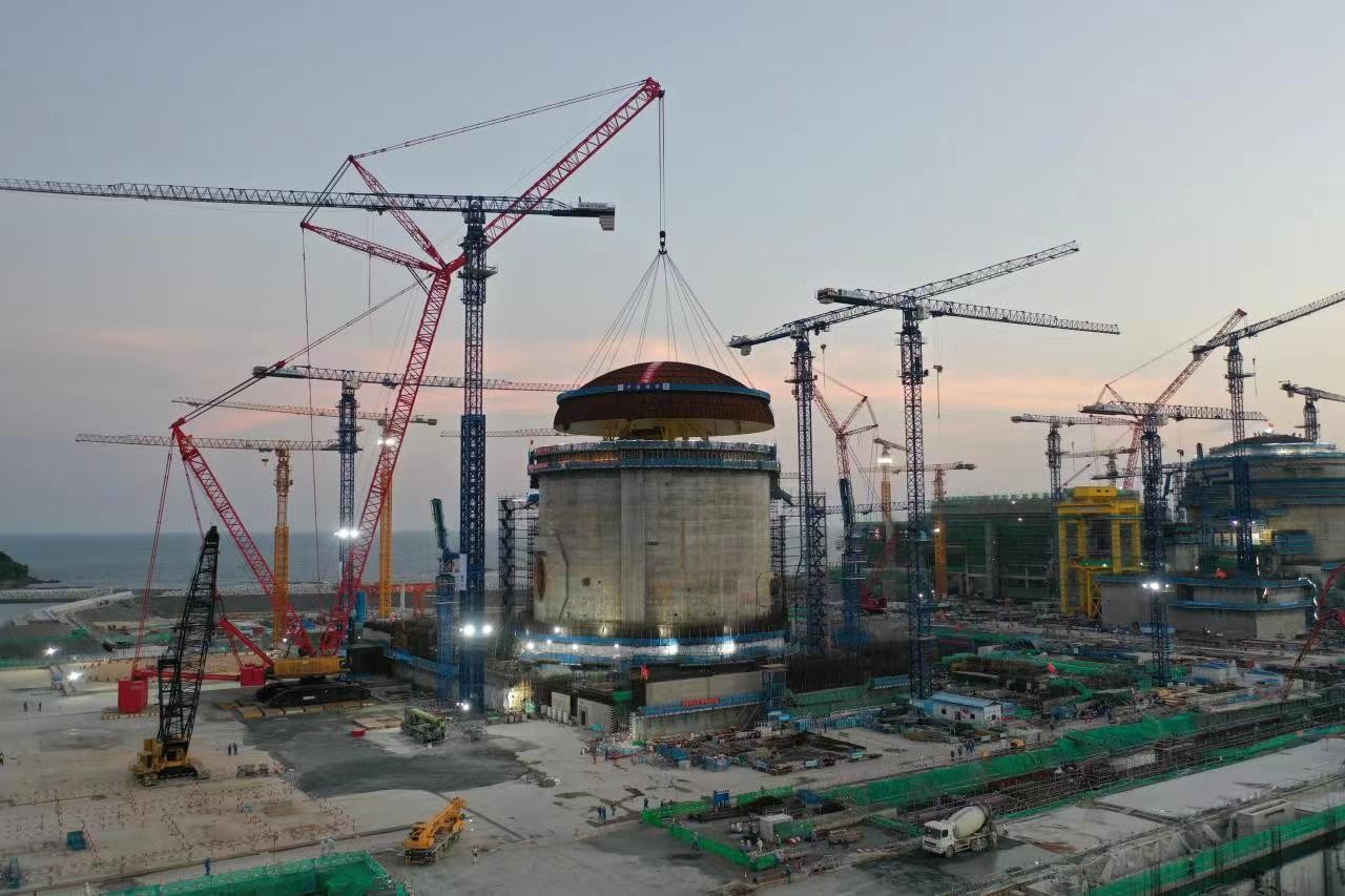 中廣核廣東太平嶺核電2號機組完成穹頂吊裝